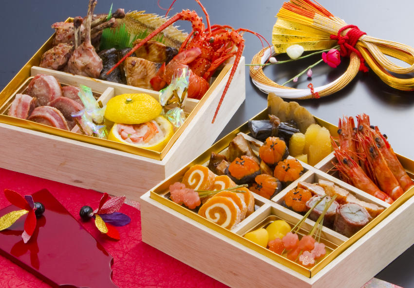 | おせち料理ご予約賜ります 黒豆、田作り、数の子、祝肴を始め鰤、小鯛の焼物牛蒡、栗きんとんと伝統的な福を呼ぶ素材に加え ローストビーフ、伊勢海老サラダ、サーモンマリネ、チキンフラワーなどモダンな味わいと豊かさを詰め合わせ ました。是非ご賞味下さいませ。 |